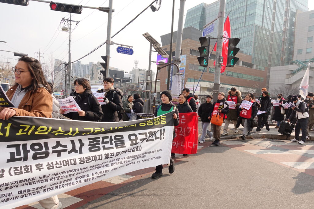 성북경찰서 앞 시민사회 공동행동, 학교 측의 ‘보복성 고소’와 경찰의 ‘과잉수사’ 강력 규탄 피고소 학생의 폭로 “래커칠 안 했는데 억지 고소당해… 국가 폭력에 맞설 것