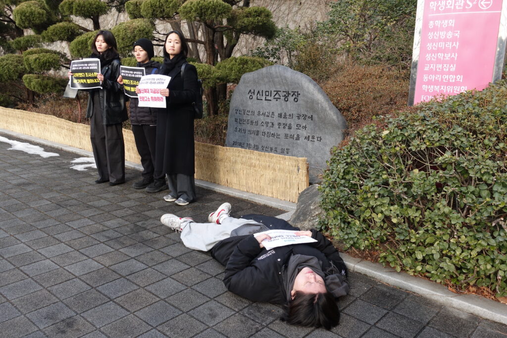 이번 사태의 뿌리는 2024년 11월로 거슬러 올라간다. 당시 성신여대 본부는 국제학부 신설과 함께 해당 학부에 한해 남성 외국인 입학을 허용하는 정책을 추진했다. 학생들은 이 과정에서 구성원과의 민주적 합의가 실종되었다고 비판하며, 반민주적 학제 개편 중단을 요구하는 시위를 전개했다.